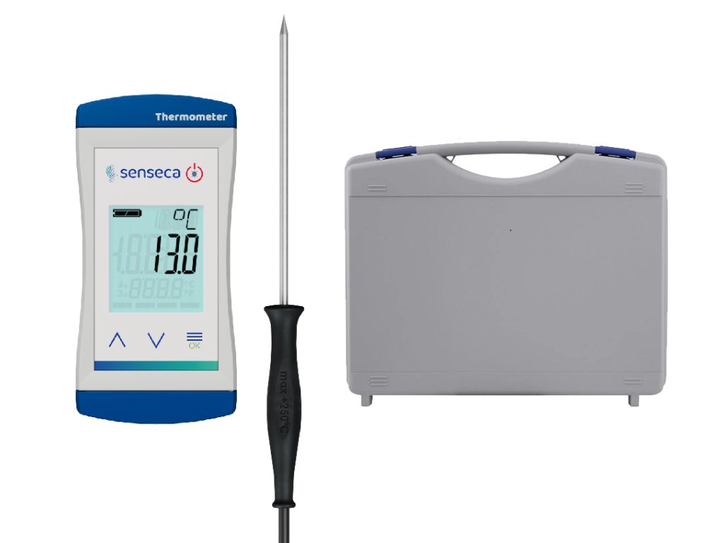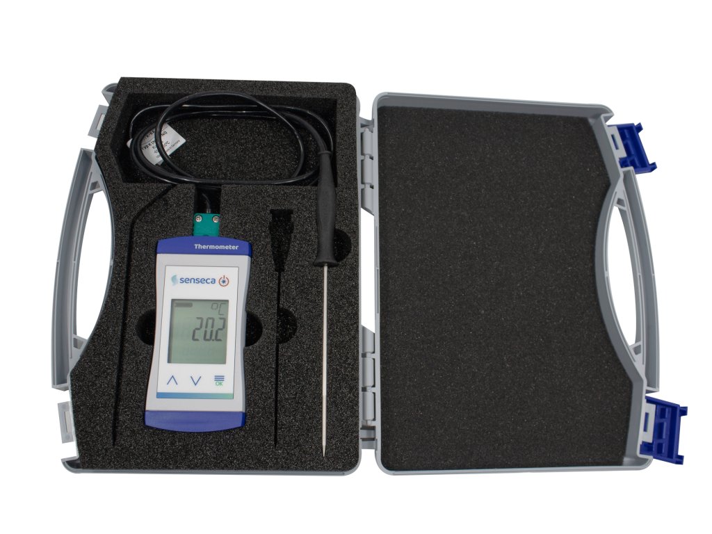 Senseca ECO 130-E3-SET Rychlý teploměr pro termočlánkové snímače typu K, se zapichovacím snímačem teploty Ø 3 mm, v kufru GKK 1000 (dříve G 1200-E3-SET)