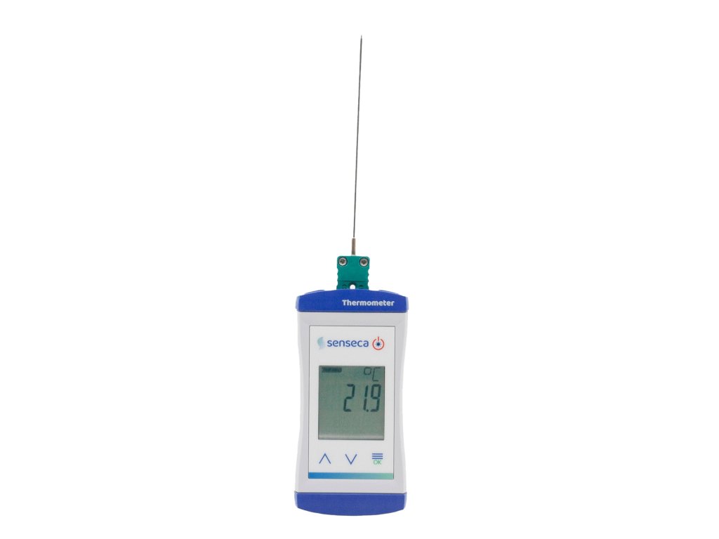 Senseca ECO 130-GTE130 Rychlý teploměr pro termočlánkové snímače typu K, se zapichovacím snímačem teploty GTE 130 OK (pružná a tenká zapichovací jehla Ø 1,5 mm, bez kabelu)