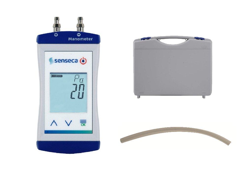 SENSECA ECO 210-3-UT-SET je jemný diferenční manometr pro použití v oblasti HVAC (topení/ventilace/klimatizace) s rozsahem měření až 200 hPa (mbar) ~ 20 kPa a vysokým rozlišení až 0,1 Pascalu v optimalizovaném režimu jemného tlaku FINE. Dodáván včetně kufru GKK 1002 a tlakové hadice PVC.