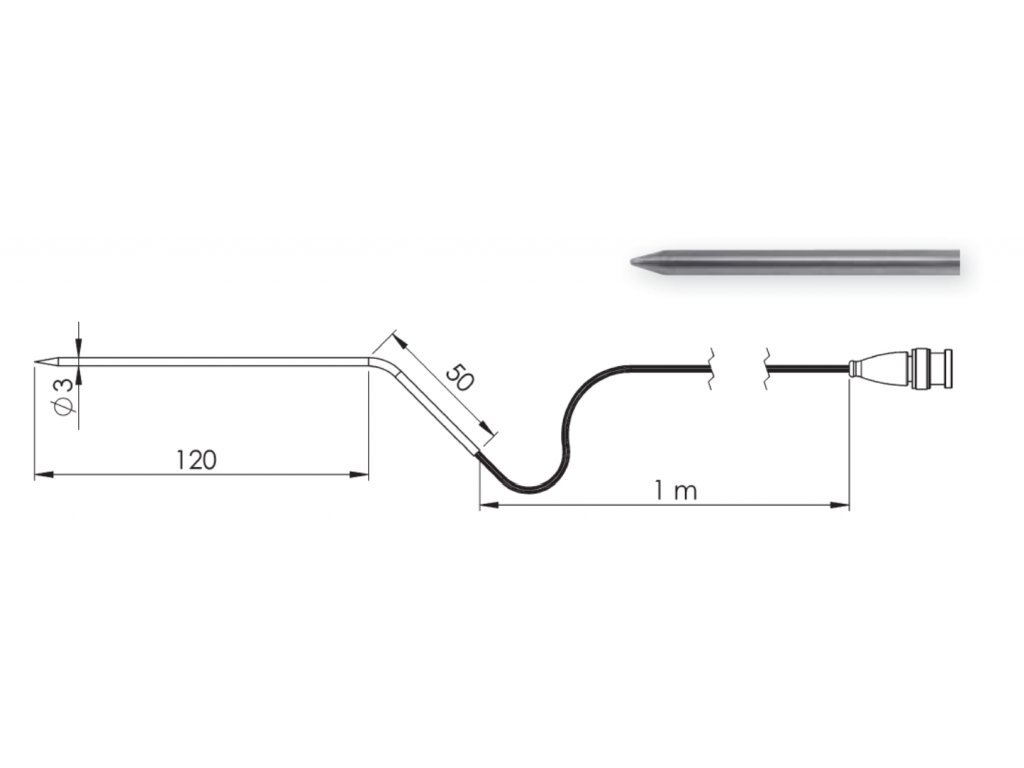 - Jímka z oceli V4A Ø 3 mm ohnutá, s jehlovitou zapichovací špičkou