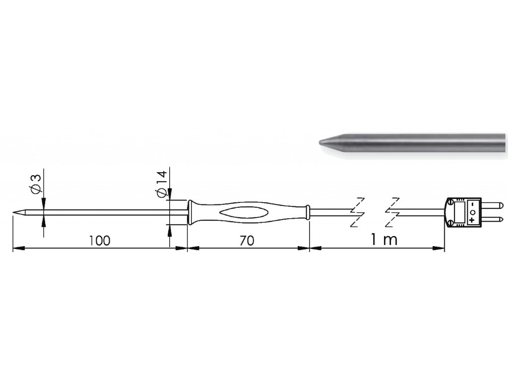 - Jímka z oceli V4A Ø 3 mm, L= 100 mm se zapichovací špičkou